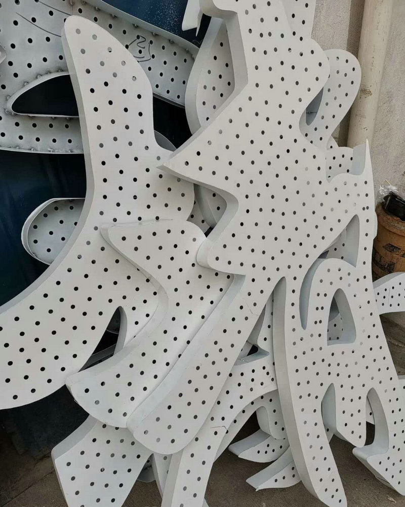 衝孔發光字人們有時又叫做LED衝孔發光字俗稱LED外露發光字,是使用鍍鋅板,鋁板等特殊的麵板作為字體基板,通過對基板進行一係列的切割,衝孔,烤漆再安裝LED光源並且還要對字體筆畫進行拚裝焊接終才能形成發光的廣告標識。